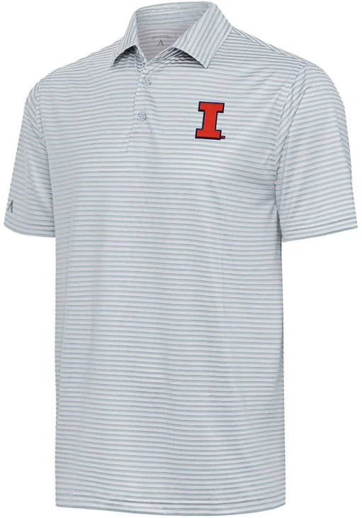 Mens Illinois Fighting Illini Grey Antigua Skills Short Sleeve Polo Shirt