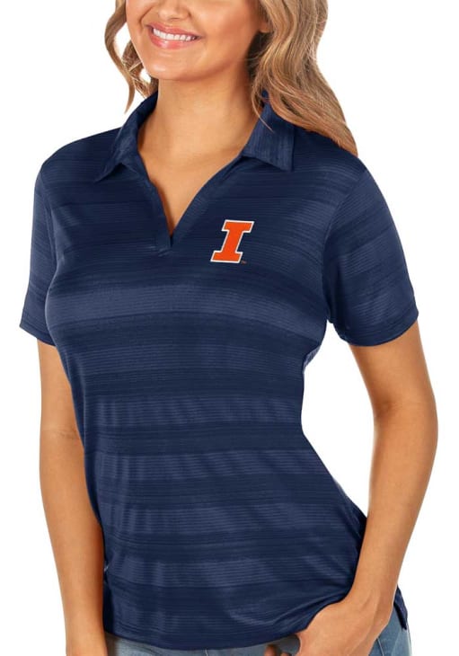Enhance your professional style with this striking Womens Navy Blue Short Sleeve Polo Shirt! Showcase your team pride among colleagues with this exceptional Illinois Navy Blue Compass Short Sleeve Polo. Stand out and make a statement in this Illinois Fighting Illini Short Sleeve Polo, featuring a team logo on chest that adds a touch of distinction to your look.