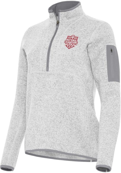Embrace the warmth and showcase your Hoosiers pride with our Indiana Hoosiers Long Sleeve Qtr Zip. This Womens Grey 2025 CFP National Champions Fortune Long Sleeve Pullover offers a coverstitch and binding at collar, cuff, and bottom hem for the perfect combination of comfort and style. Elevate your everyday look with this must-have Indiana Hoosiers Long Sleeve Qtr Zip.