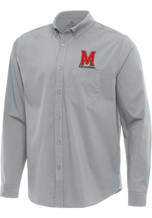 Mens Maryland Terrapins Grey Antigua Flight Long Sleeve Dress Shirt