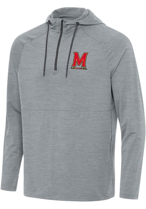 Embrace the warmth and showcase your Terrapins pride with our Maryland Terrapins Long Sleeve Qtr Zip Pullover. This Mens Grey Spikes Long Sleeve Pullover offers a corded drawcords, contrast zipper and double pockets for the perfect combination of comfort and style. Elevate your everyday look with this must-have Maryland Terrapins Long Sleeve Qtr Zip Pullover.