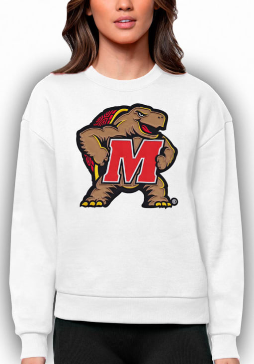 Gear up for the ultimate game day experience with this remarkable Maryland TerrapinsWomens White Full Front Victory Crew Sweatshirt! Designed with the true fan in mind, this Terrapins Long Sleeve Sweatshirt features a neck trim and bottom opening. Stay warm and comfortable with this Womens Maryland Terrapins Crew Sweatshirt.