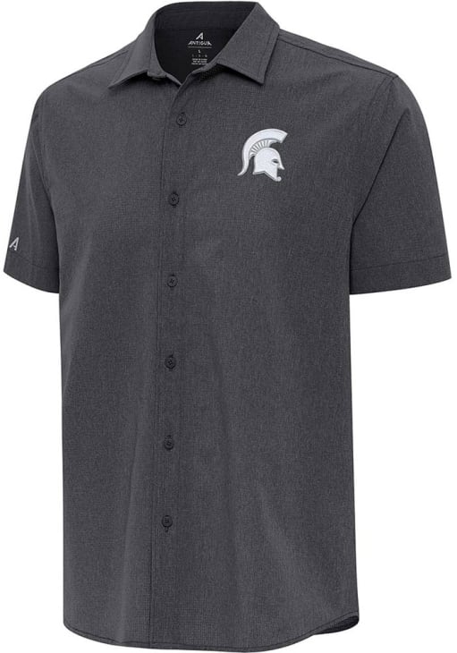 Elevate your style for any occasion with this sophisticated Michigan State Spartans Short Sleeve Dress Shirt! Let your Spartans pride show in this Black Activate Button Down Shirt. This Activate MSU Dress Shirt is perfect for showing your Spartans pride at the office. Featuring a micro ventilation and back vent to keep you cool, this Michigan State Spartans Dress Shirt has a subtle touch of fan support.