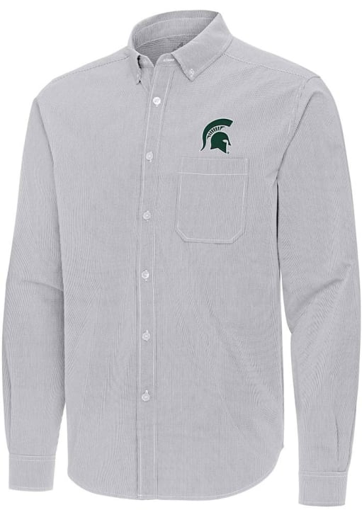 Show your Spartans spirit show in the office with this Michigan State Spartans Dress Shirt! Embrace your team spirit and showcase it proudly in this Mens Ash Porter Long Sleeve Long Sleeve Button Down Shirt. This Long Sleeve Dress Shirt features a team logo on left chest.