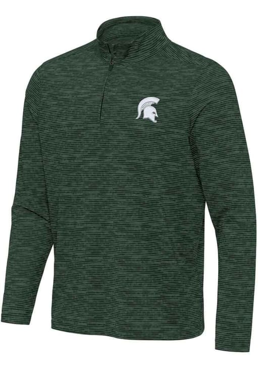 Embrace the warmth and showcase your Spartans pride with our Michigan State Spartans Long Sleeve Qtr Zip Pullover. This Mens Green Determined Long Sleeve Pullover offers a team graphic embroidered on front left chest for the perfect combination of comfort and style. Elevate your everyday look with this must-have Michigan State Spartans Long Sleeve Qtr Zip Pullover.