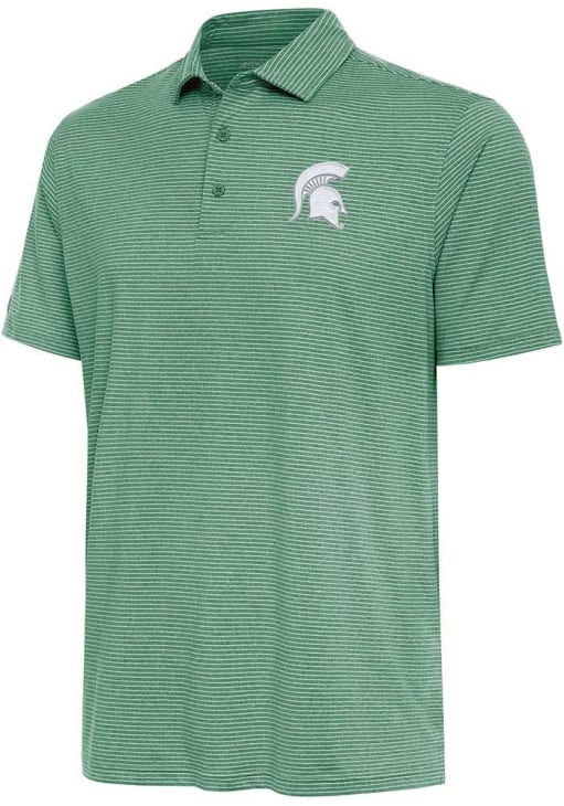 Enhance your professional style with this striking Mens Green Short Sleeve Polo Shirt! Showcase your team pride among colleagues with this exceptional MSU Green Scheme Short Sleeve Polo. Stand out and make a statement in this Michigan State Spartans Short Sleeve Polo, featuring a heathered stripe print that adds a touch of distinction to your look.