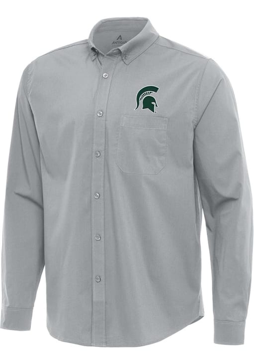Mens Michigan State Spartans Grey Antigua Flight Long Sleeve Dress Shirt