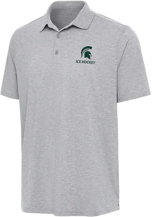 Mens Michigan State Spartans Grey Antigua Par 3 Cross Country Short Sleeve Polo Shirt