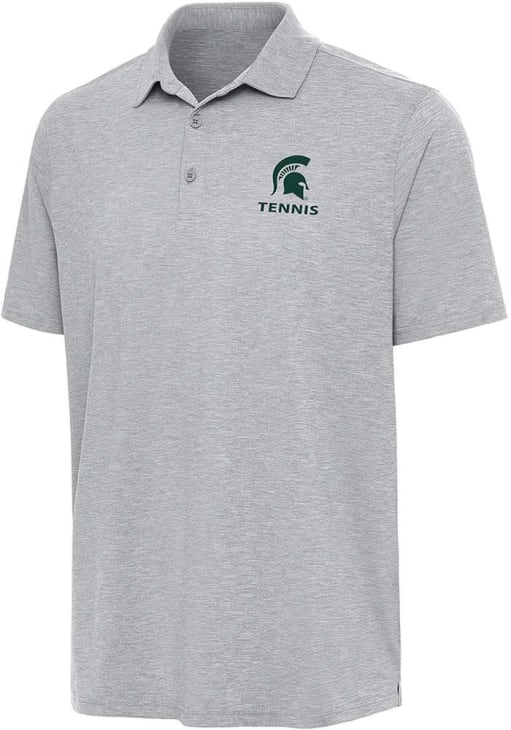 Mens Michigan State Spartans Grey Antigua Par 3 Tennis Short Sleeve Polo Shirt