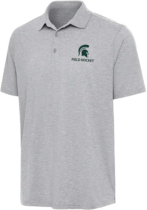 Mens Michigan State Spartans Grey Antigua Par 3 Soccer Short Sleeve Polo Shirt