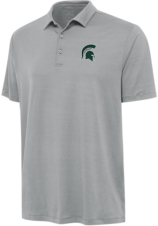 Enhance your professional style with this striking Mens Grey Short Sleeve Polo Shirt! Showcase your team pride among colleagues with this exceptional MSU Grey Reprocess Recycled Short Sleeve Polo. Stand out and make a statement in this Michigan State Spartans Short Sleeve Polo, featuring a materials made from recycled plastic that adds a touch of distinction to your look.