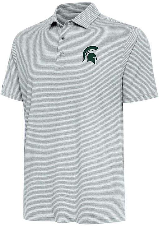 Enhance your professional style with this striking Mens Grey Short Sleeve Polo Shirt! Showcase your team pride among colleagues with this exceptional MSU Grey Scheme Short Sleeve Polo. Stand out and make a statement in this Michigan State Spartans Short Sleeve Polo, featuring a heathered stripe print that adds a touch of distinction to your look.