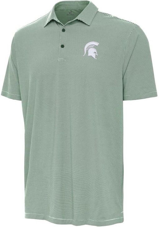 Enhance your professional style with this striking Mens Green Short Sleeve Polo Shirt! Showcase your team pride among colleagues with this exceptional MSU Green Twine Short Sleeve Polo. Stand out and make a statement in this Michigan State Spartans Short Sleeve Polo, featuring a micro stripe pattern that adds a touch of distinction to your look.
