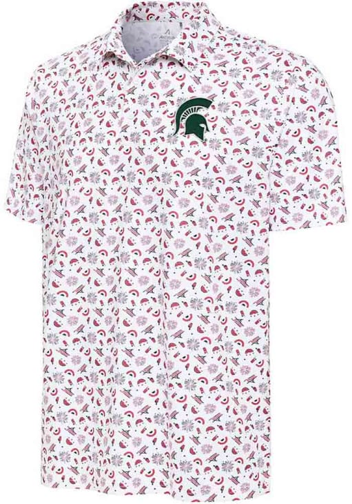 Enhance your professional style with this striking Mens White Short Sleeve Polo Shirt! Showcase your team pride among colleagues with this exceptional MSU White Independence Short Sleeve Polo. Stand out and make a statement in this Michigan State Spartans Short Sleeve Polo, featuring a team graphic embroidered on front left chest that adds a touch of distinction to your look.