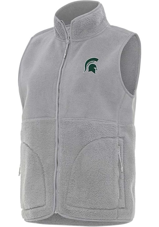 Gear up for the upcoming tailgate with the ultimate Michigan State Spartans Womens Grey Vest. Stay warm in this MSU Nostalgic Sleeveless Jacket, which features a micro fleece on the top and bonded sherpa on bottom.