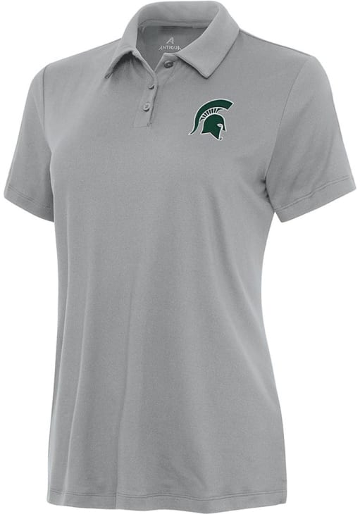 Enhance your professional style with this striking Womens Grey Short Sleeve Polo Shirt! Showcase your team pride among colleagues with this exceptional MSU Grey Reprocess Recycled Short Sleeve Polo. Stand out and make a statement in this Michigan State Spartans Short Sleeve Polo, featuring a materials made from recycled plastic that adds a touch of distinction to your look.