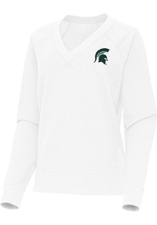 Gear up for the ultimate game day experience with this remarkable Michigan State SpartansWomens White Varsity Crew Sweatshirt! Designed with the true fan in mind, this Spartans Long Sleeve Sweatshirt features a left chest team logo. Stay warm and comfortable with this Womens MSU Spartans Crew Sweatshirt.