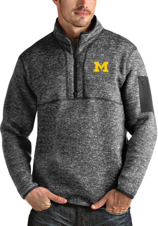 Mens Michigan Wolverines Grey Antigua Fortune Qtr Zip Pullover