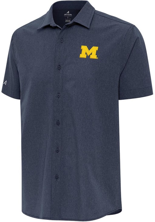 Elevate your style for any occasion with this sophisticated Michigan Wolverines Short Sleeve Dress Shirt! Let your Wolverines pride show in this Navy Blue Activate Button Down Shirt. This Activate Michigan Dress Shirt is perfect for showing your Wolverines pride at the office. Featuring a micro ventilation and back vent to keep you cool, this Michigan Wolverines Dress Shirt has a subtle touch of fan support.