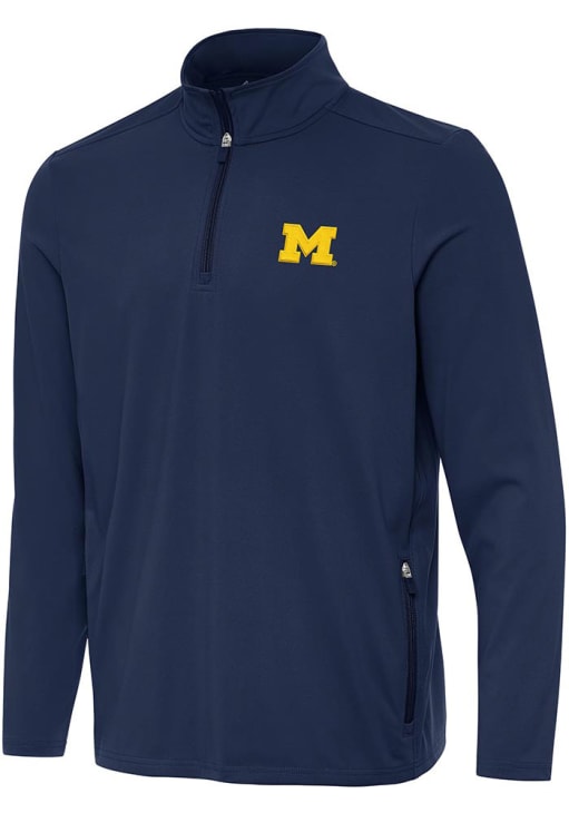 Embrace the warmth and showcase your Wolverines pride with our Michigan Wolverines Long Sleeve Qtr Zip Pullover. This Mens Blue Perilous Long Sleeve Pullover offers a flat knit fabric with a cozy brushed back for the perfect combination of comfort and style. Elevate your everyday look with this must-have Michigan Wolverines Long Sleeve Qtr Zip Pullover.