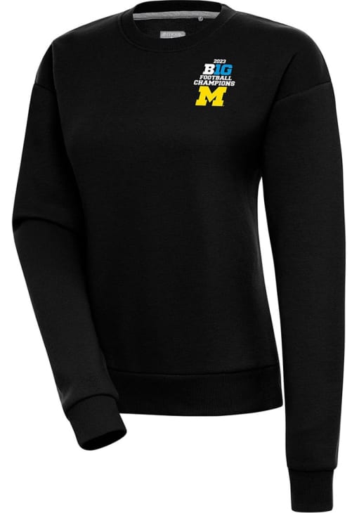 Womens Michigan Wolverines Black Antigua 2023 Big Ten Champions Victory Crew Sweatshirt