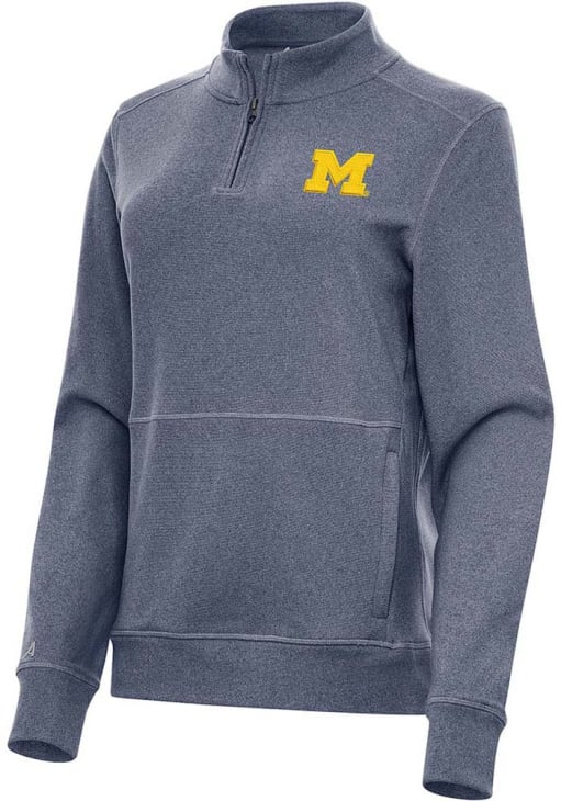 Embrace the warmth and showcase your Wolverines pride with our Michigan Wolverines Long Sleeve Qtr Zip. This Womens Navy Blue Crush Long Sleeve Pullover offers a soft brushed heather fleece fabric for the perfect combination of comfort and style. Elevate your everyday look with this must-have Michigan Wolverines Long Sleeve Qtr Zip.