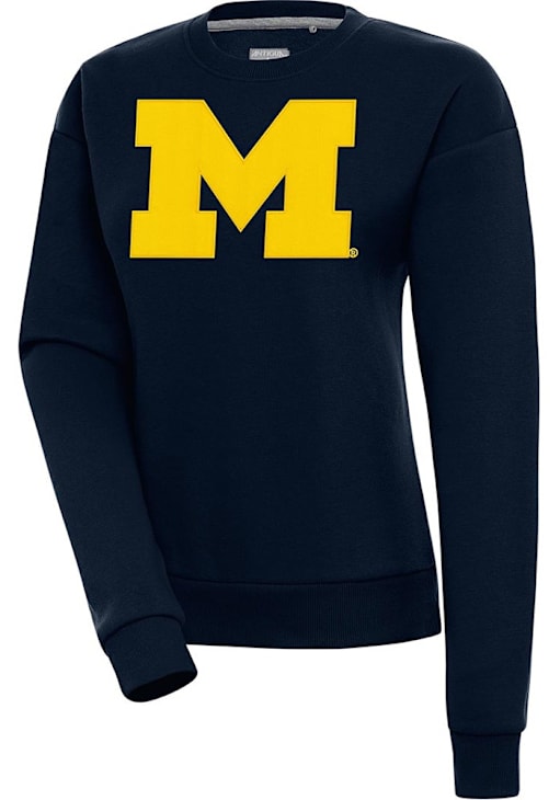 Gear up for the ultimate game day experience with this remarkable Michigan WolverinesWomens Blue Full Front Victory Crew Sweatshirt! Designed with the true fan in mind, this Wolverines Long Sleeve Sweatshirt features a neck trim and bottom opening. Stay warm and comfortable with this Womens Michigan Wolverines Crew Sweatshirt.