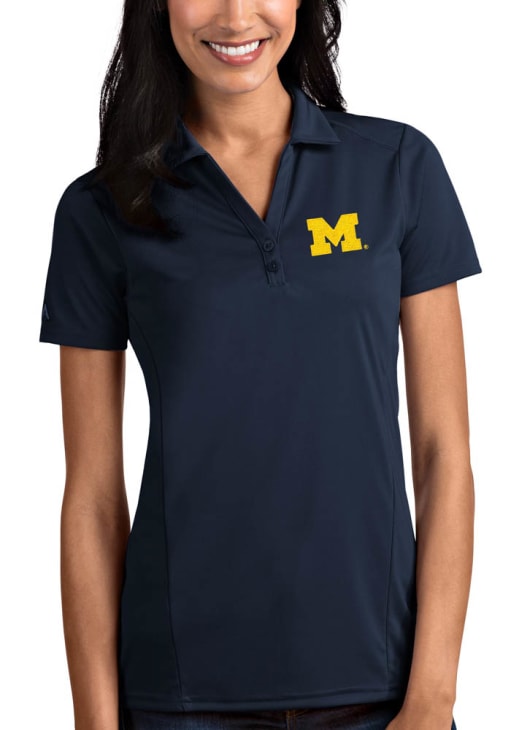 Womens Michigan Wolverines Blue Antigua Tribute Short Sleeve Polo Shirt