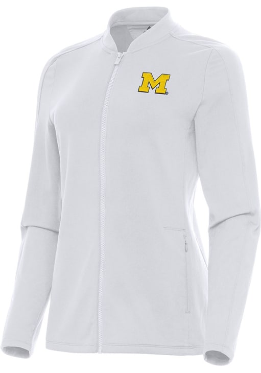 Stay warm and cozy with this Michigan Wolverines Womens White Continual Light Weight Jacket! Cheer on the Wolverines in this Michigan Light Weight Jacket. With a sleek lines and a blade collar, you won't want to be caught without this Light Weight Jacket on gameday.