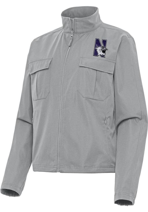 Stay warm and cozy with this Northwestern Wildcats Womens Grey Even Par Light Weight Jacket! Cheer on the Wildcats in this Northwestern Wildcats Light Weight Jacket. With a double layer collar and flat patch chest pockets, you won't want to be caught without this Light Weight Jacket on gameday.