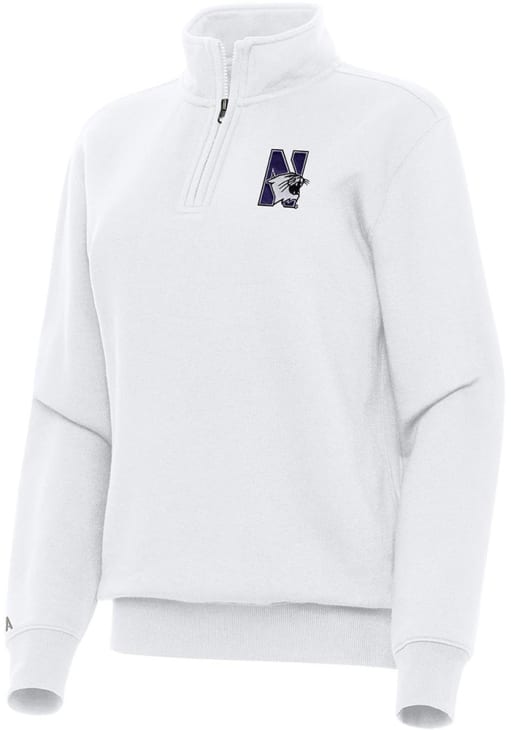 Embrace the warmth and showcase your Wildcats pride with our Northwestern Wildcats Long Sleeve Qtr Zip. This Womens White Victory Long Sleeve Pullover offers a heavyweight cotton polyester brushed back fleece for the perfect combination of comfort and style. Elevate your everyday look with this must-have Northwestern Wildcats Long Sleeve Qtr Zip.