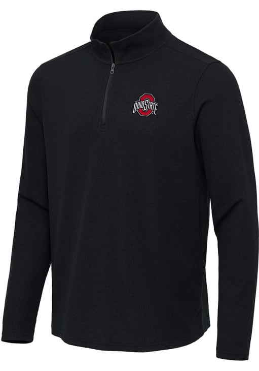 Embrace the warmth and showcase your Buckeyes pride with our Ohio State Buckeyes Long Sleeve Qtr Zip Pullover. This Mens Black Sync Long Sleeve Pullover offers a team logo on left chest for the perfect combination of comfort and style. Elevate your everyday look with this must-have Ohio State Buckeyes Long Sleeve Qtr Zip Pullover.