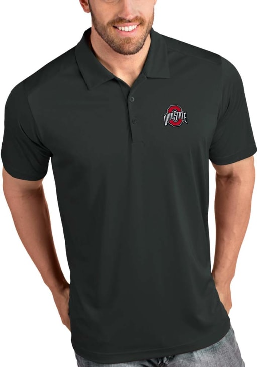 Mens Ohio State Buckeyes Charcoal Antigua Tribute Short Sleeve Polo Shirt