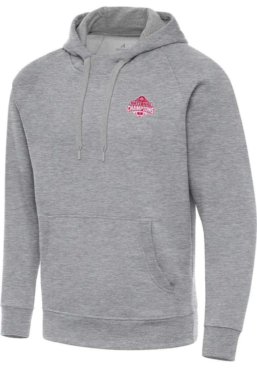 Mens Ohio State Buckeyes Grey Antigua 2024 Football National Champions Victory Long Sleeve Fashion..