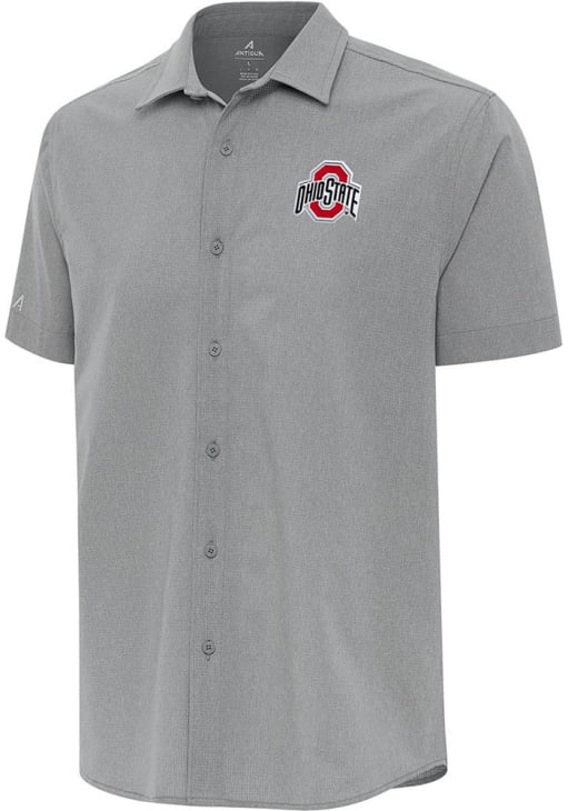 Elevate your style for any occasion with this sophisticated Ohio State Buckeyes Short Sleeve Dress Shirt! Let your Buckeyes pride show in this Grey Activate Button Down Shirt. This Activate The Ohio State University Dress Shirt is perfect for showing your Buckeyes pride at the office. Featuring a micro ventilation and back vent to keep you cool, this Ohio State Buckeyes Dress Shirt has a subtle touch of fan support.