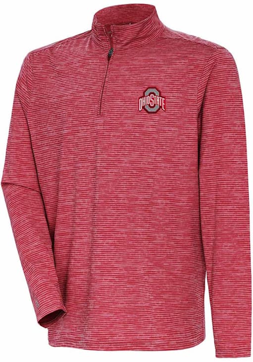 Embrace the warmth and showcase your Buckeyes pride with our Ohio State Buckeyes Long Sleeve Qtr Zip Pullover. This Mens Red Determined Watercolor Long Sleeve Pullover offers a sublimated print watercolor stripe for the perfect combination of comfort and style. Elevate your everyday look with this must-have Ohio State Buckeyes Long Sleeve Qtr Zip Pullover.