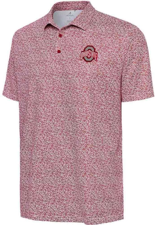 Enhance your professional style with this striking Mens Red Short Sleeve Polo Shirt! Showcase your team pride among colleagues with this exceptional The Ohio State University Red Field Ditsy Short Sleeve Polo. Stand out and make a statement in this Ohio State Buckeyes Short Sleeve Polo, featuring a team graphic embroidered on front left chest that adds a touch of distinction to your look.