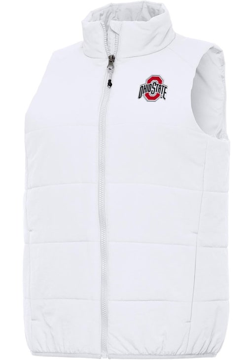 Gear up for the upcoming tailgate with the ultimate Ohio State Buckeyes Womens White Vest. Stay warm in this The Ohio State University Experience Sleeveless Jacket, which features a matte puffer jacket fabric.