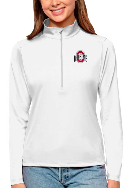 Embrace your Buckeyes spirit with pride in this Ohio State Buckeyes Long Sleeve Qtr Zip. This Womens White Tribute Long Sleeve Pullover showcases a self-fabric collar, open cuff & bottom hem. You'll want to wear this Ohio State Buckeyes Long Sleeve Qtr Zip every day.