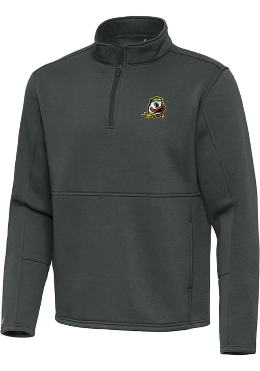 Embrace the warmth and showcase your Ducks pride with our Oregon Ducks Long Sleeve Qtr Zip Pullover. This Mens Grey Twist Long Sleeve Pullover offers a team logo on left chest for the perfect combination of comfort and style. Elevate your everyday look with this must-have Oregon Ducks Long Sleeve Qtr Zip Pullover.
