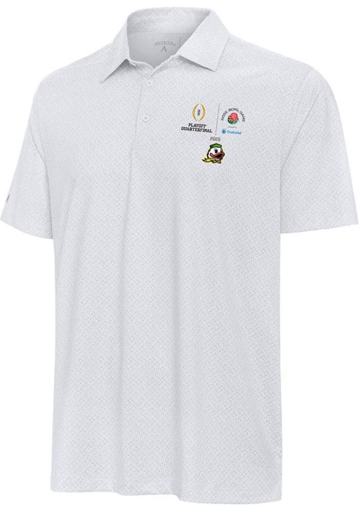 Enhance your professional style with this striking Mens White Short Sleeve Polo Shirt! Showcase your team pride among colleagues with this exceptional Oregon White Football 2024 CFP Quarterfinals Rose Bowl Whirl Short Sleeve Polo. Stand out and make a statement in this Oregon Ducks Short Sleeve Polo, featuring a team logo on the chest that adds a touch of distinction to your look.
