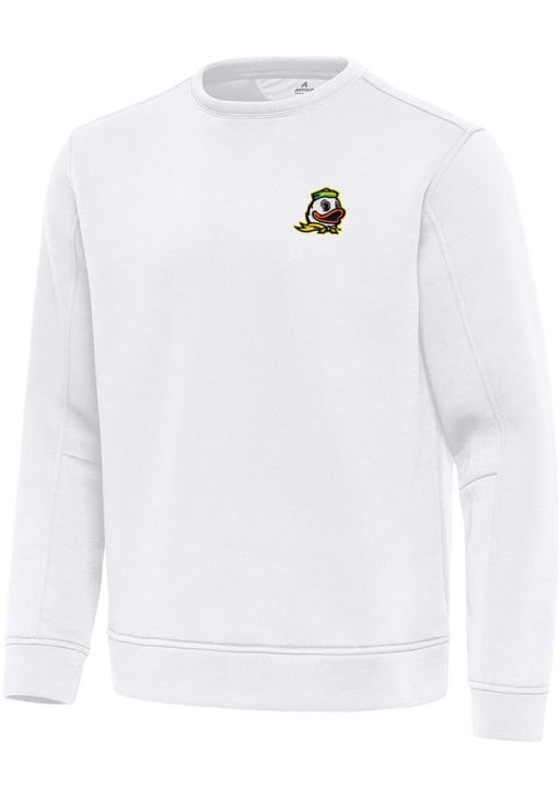 Gear up for the ultimate game day experience with this remarkable Oregon DucksMens White Relevant Crew Sweatshirt! Designed with the true fan in mind, this Ducks Long Sleeve Crew Sweatshirt features a team logo on left chest. Stay warm and comfortable with this Mens Oregon Ducks Crew Sweatshirt.