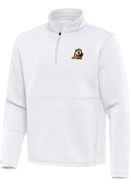 Embrace the warmth and showcase your Ducks pride with our Oregon Ducks Long Sleeve Qtr Zip Pullover. This Mens White Twist Long Sleeve Pullover offers a team logo on left chest for the perfect combination of comfort and style. Elevate your everyday look with this must-have Oregon Ducks Long Sleeve Qtr Zip Pullover.