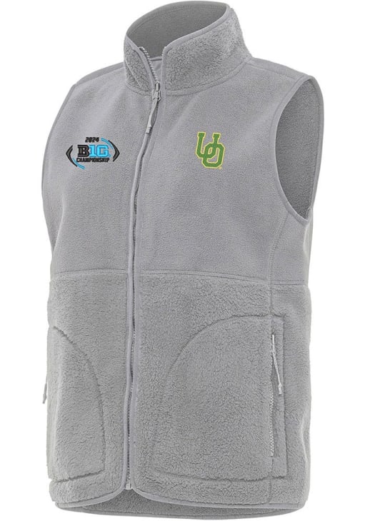 Gear up for the upcoming tailgate with the ultimate Oregon Ducks Womens Grey Vest. Stay warm in this Oregon 2024 Big Ten Football Nostalgic Sleeveless Jacket, which features a team logo and 2024 Big Ten Football on front chest.