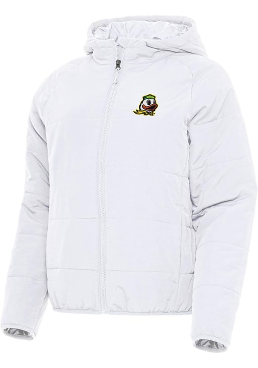 Stay cozy in this Oregon Ducks Womens White Universe Filled Jacket. This Ducks Filled Coat is a great way to stay warm and show your Oregon spirit in even the coldest weather. Don't leave home without this Oregon Ducks Filled Jacket, which features a quilted puffer with on seam hand pockets.