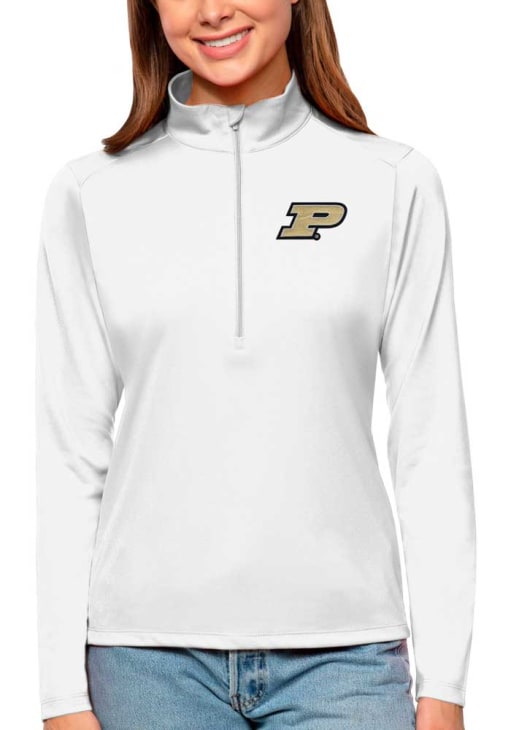 Embrace your Boilermakers spirit with pride in this Purdue Boilermakers Long Sleeve Qtr Zip. This Womens White Tribute Long Sleeve Pullover showcases a self-fabric collar, open cuff & bottom hem. You'll want to wear this Purdue Boilermakers Long Sleeve Qtr Zip every day.