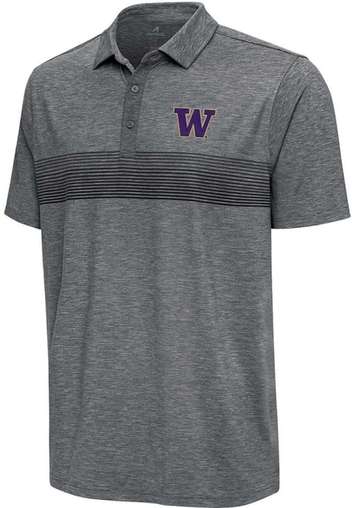 Enhance your professional style with this striking Mens Charcoal Short Sleeve Polo Shirt! Showcase your team pride among colleagues with this exceptional Washington Charcoal Dashing Short Sleeve Polo. Stand out and make a statement in this Washington Huskies Short Sleeve Polo, featuring a team logo on left chest that adds a touch of distinction to your look.