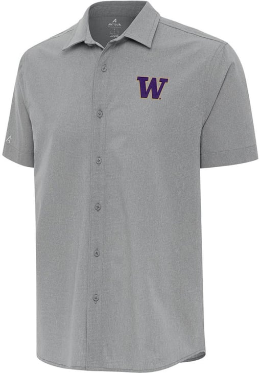 Elevate your style for any occasion with this sophisticated Washington Huskies Short Sleeve Dress Shirt! Let your Huskies pride show in this Grey Activate Button Down Shirt. This Activate Washington Dress Shirt is perfect for showing your Huskies pride at the office. Featuring a micro ventilation and back vent to keep you cool, this Washington Huskies Dress Shirt has a subtle touch of fan support.