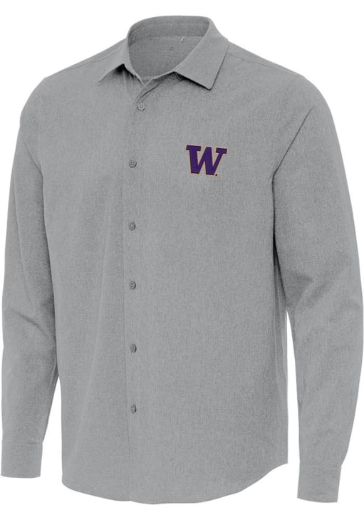 Show your Huskies spirit show in the office with this Washington Huskies Dress Shirt! Embrace your team spirit and showcase it proudly in this Mens Grey Exposure Long Sleeve Long Sleeve Button Down Shirt. This Long Sleeve Dress Shirt features a micro ventilation and woven mesh.