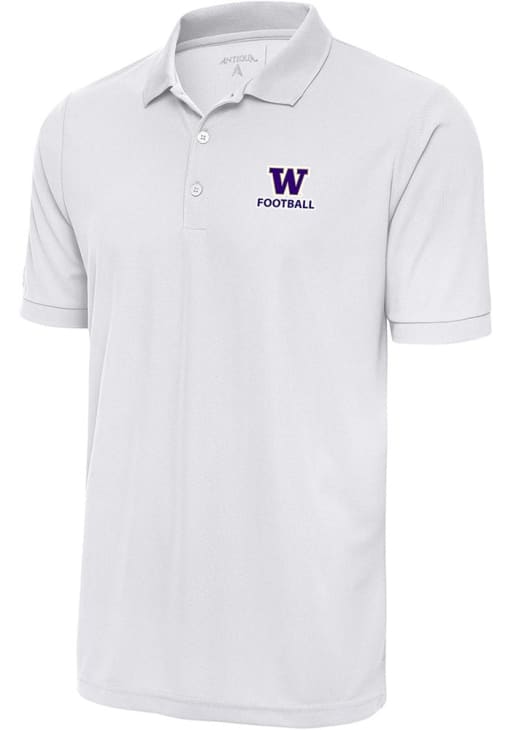 Enhance your professional style with this striking Mens White Short Sleeve Polo Shirt! Showcase your team pride among colleagues with this exceptional Washington White Football Legacy Pique Short Sleeve Polo. Stand out and make a statement in this Washington Huskies Short Sleeve Polo, featuring a flat knit collar and cut and sew cuffs that adds a touch of distinction to your look.